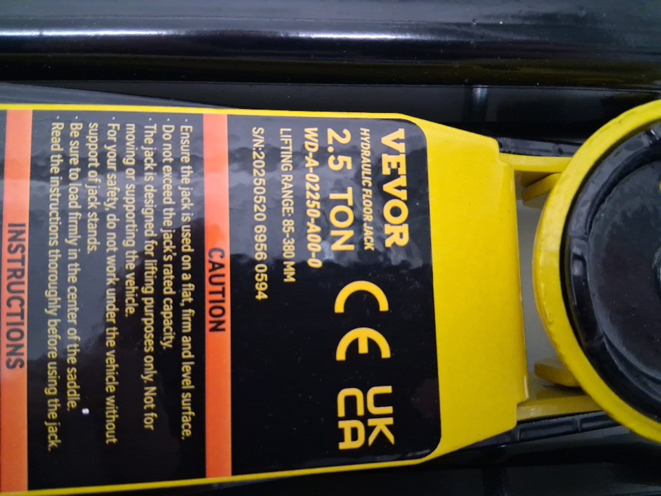 VEVOR Low Profile Heavy-Duty Steel Floor Jack with Single Piston Hydraulic Pump - 2.5 Ton cap - Yellow (model: wd-a-02250-a00-0)