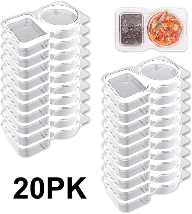 20PK Double Compartment Reusable Snack Containers - 5.5" x 3.4" x 1" - Clear (Model: ‎SGXLH20P)