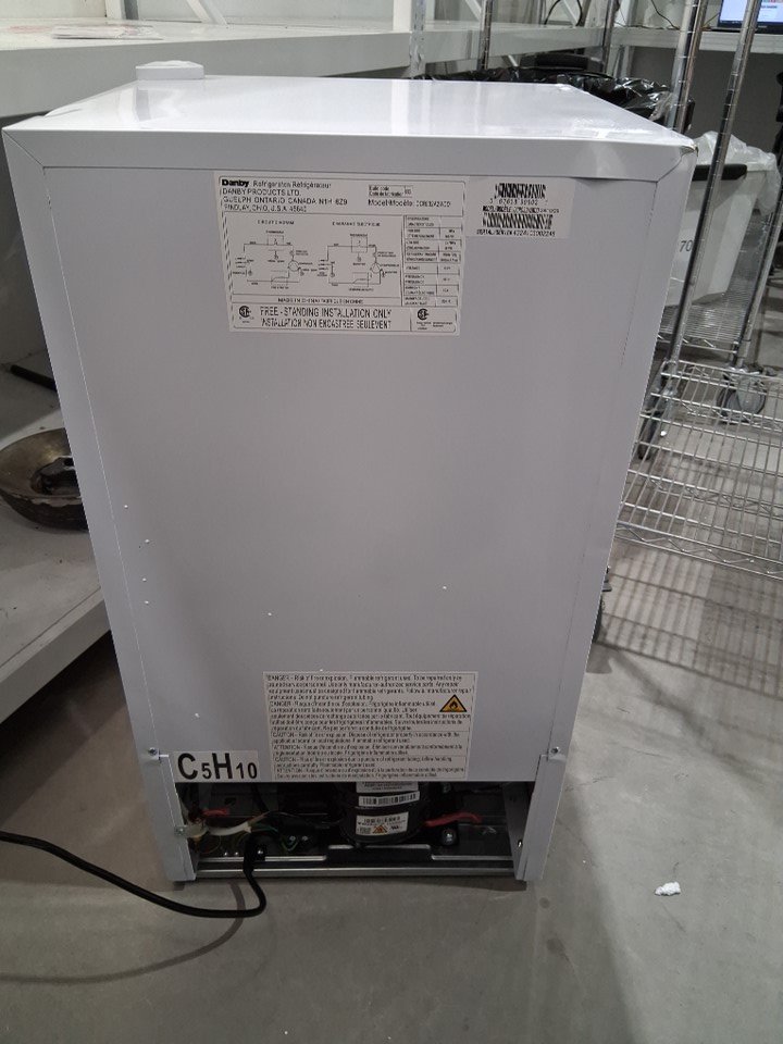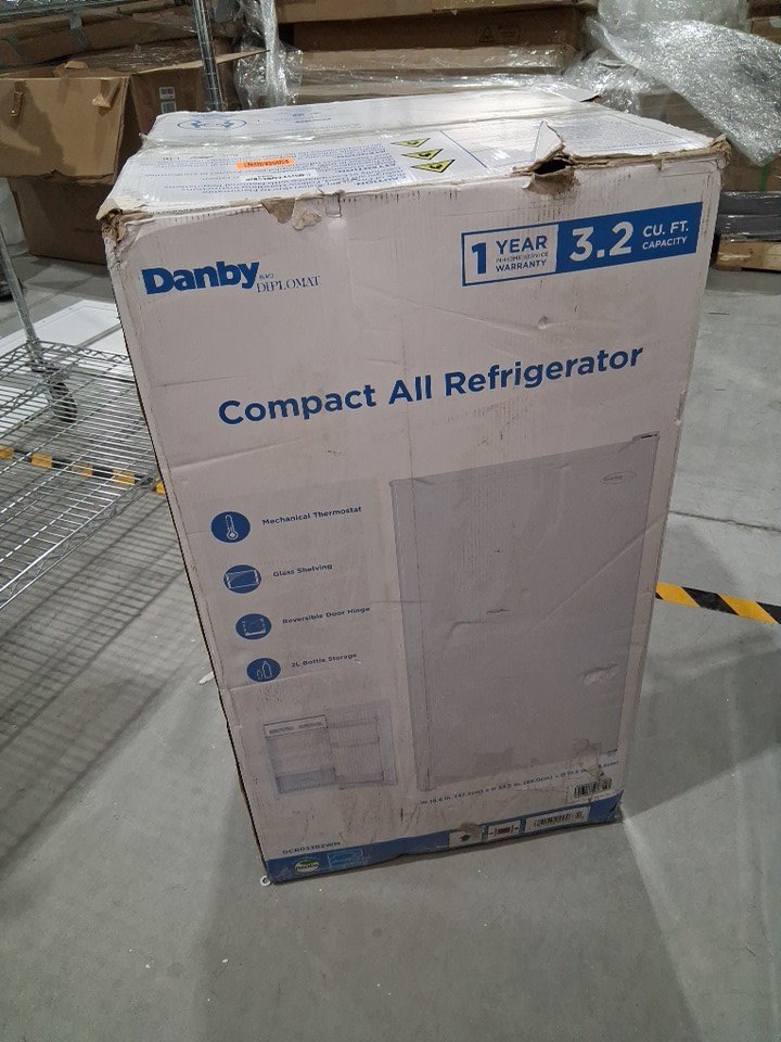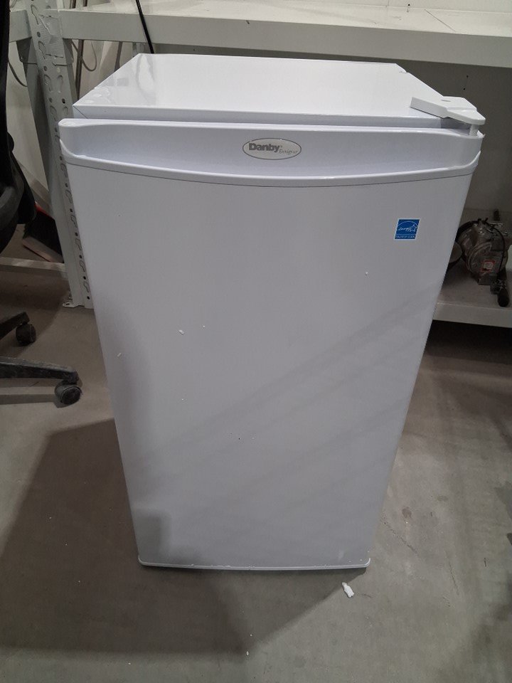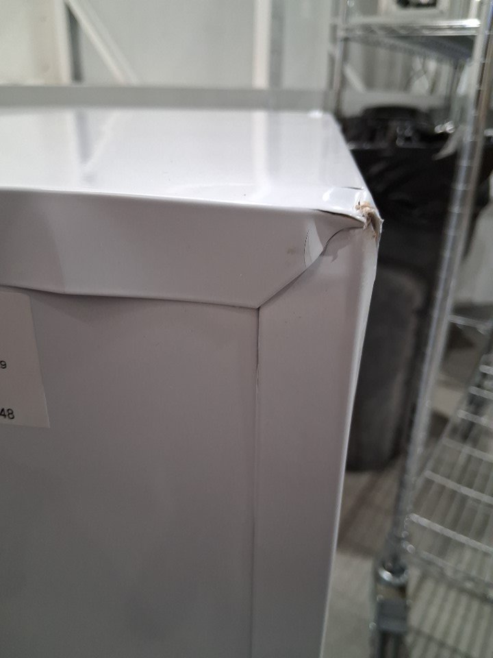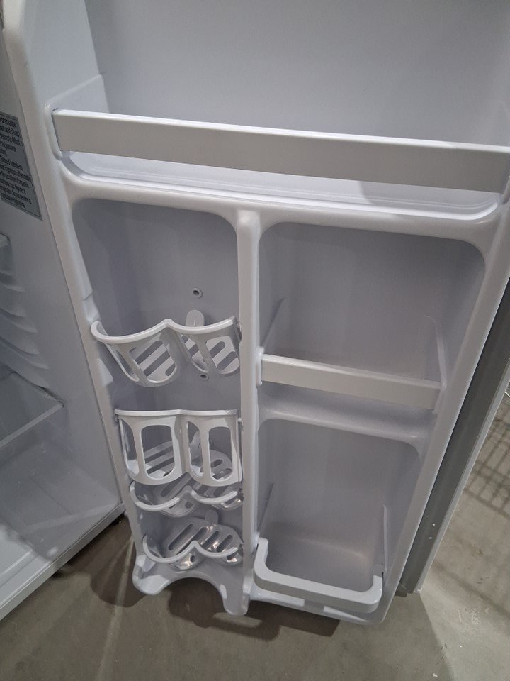 There are numerous small dents on the edges/corners of the top of the fridge, and the door also appears to be slightly loose on the hinges - see photos. Briefly made a rattling sound when first plugged in to test for power, but the noise subsided after a few seconds and cooling appeared to function normally.
