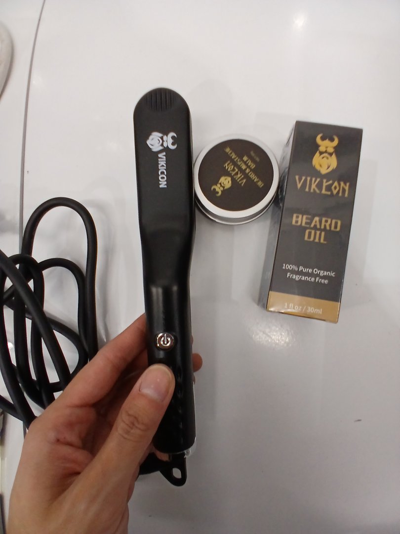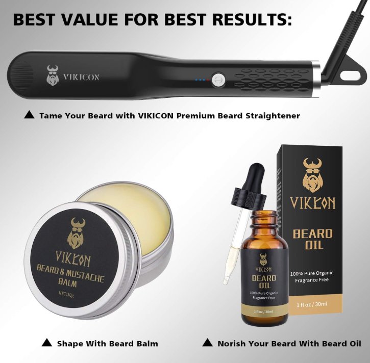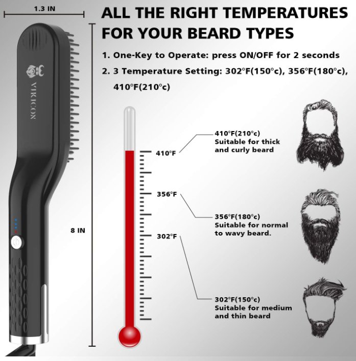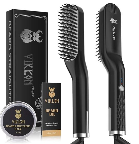 INVJOY Beard Straightener with FREE Beard Oil and Beard Balm - 3 Temperature Settings - black - (model wt-023)