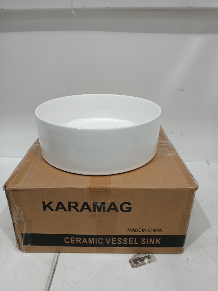 karamag Porcelain Ceramic round vessel above counter vanity sink Bowl - 12" - white (model: 6012)