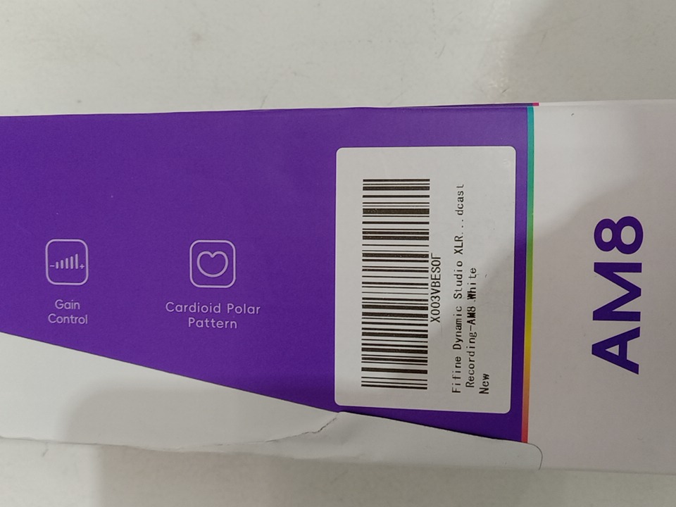 Fifine Dynamic Studio RGB Microphone with Monitoring Headphones Jack, Gain Knob, RGB for Podcast Recording - White (MODEL: AM8)