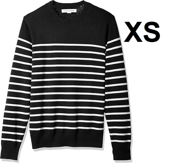 MEN'S AMAZON ESSENTIALS LONG SLEEVE CREWNECK SWEATER - Extra Small - black/White Stripe (STYLE: MAE35002FL18)
