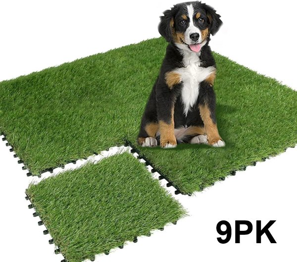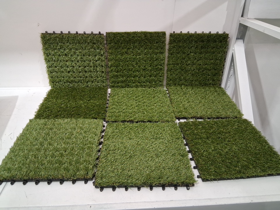 9pk Qingbei Rina Artificial Grass Turf Tiles Rug for Dogs - 12'' x 12'' - green