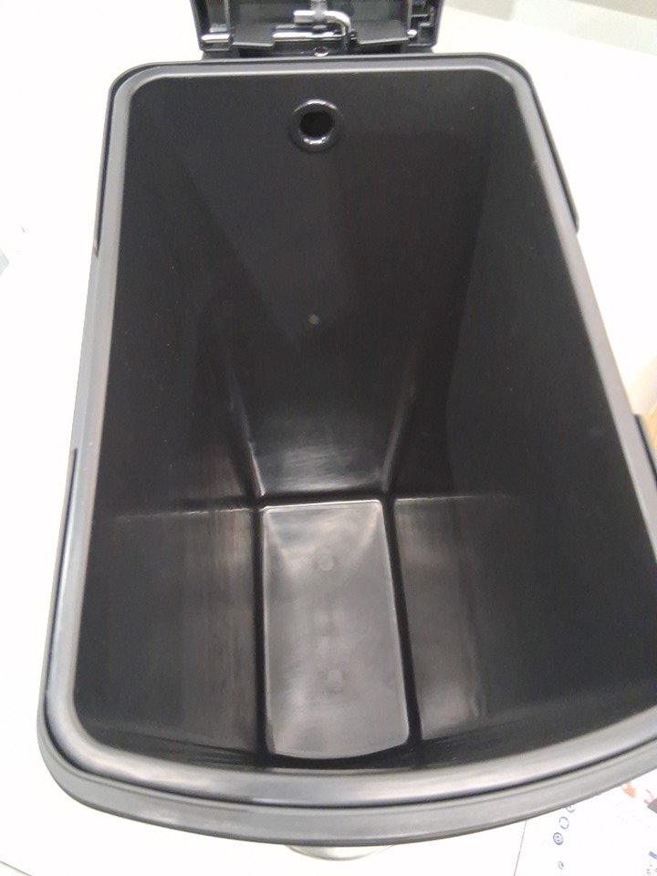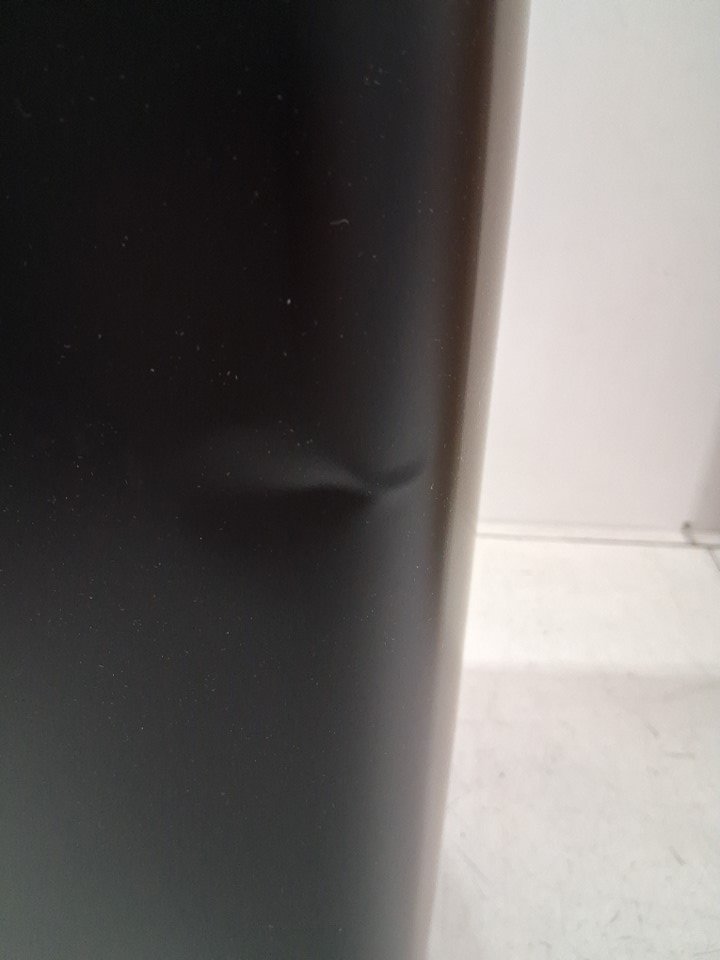 There is a dent on the back/side of the trash can, but it otherwise appears new (see photos)