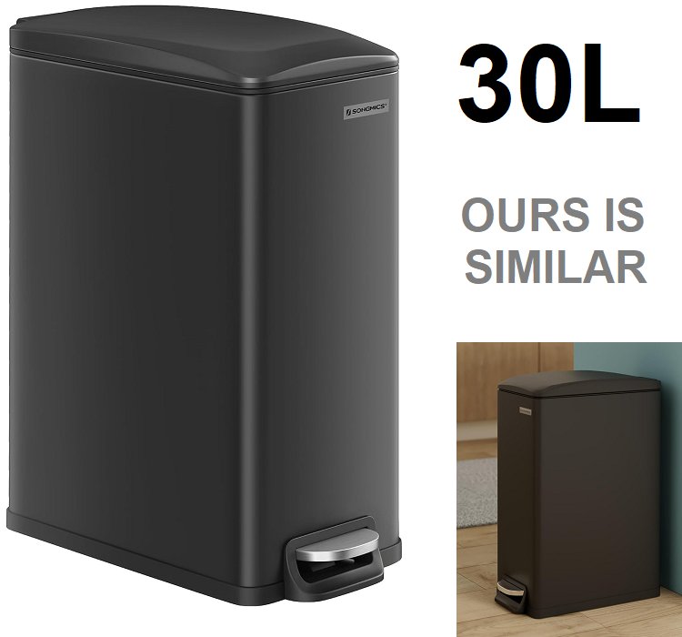 large SOFT-CLOSE trash can - 30l - 23.5" x 9.5" x 14.5" - black