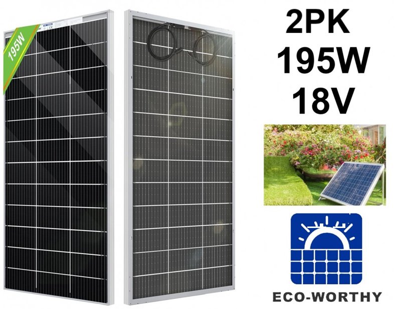 ECO-WORTHY Monocrystalline Bifacial Solar Panel Module - 195W - 18V - 52.6" x 26.4"