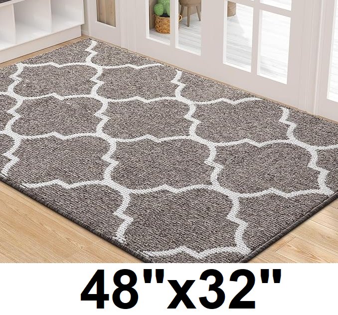 OLANLY Indoor washable low-profile non-slip door mat - 48" x 32" - brown/white quatrefoil
