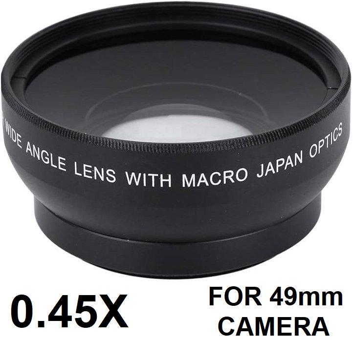 High Definition Wide Angle Macro Lens for 49mm Mount Camera - 0.45X Magnification - black