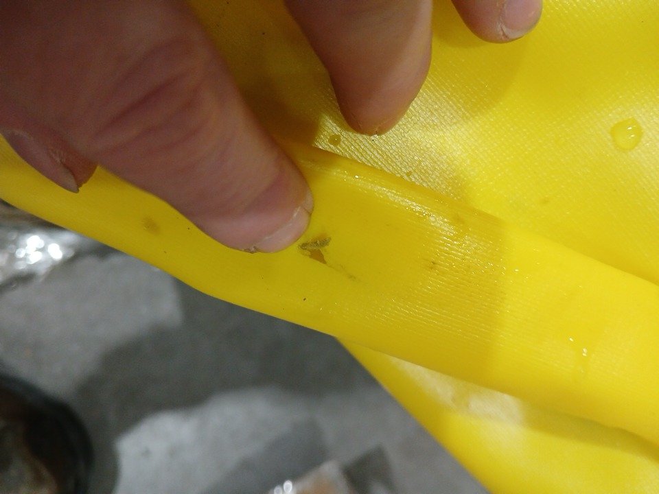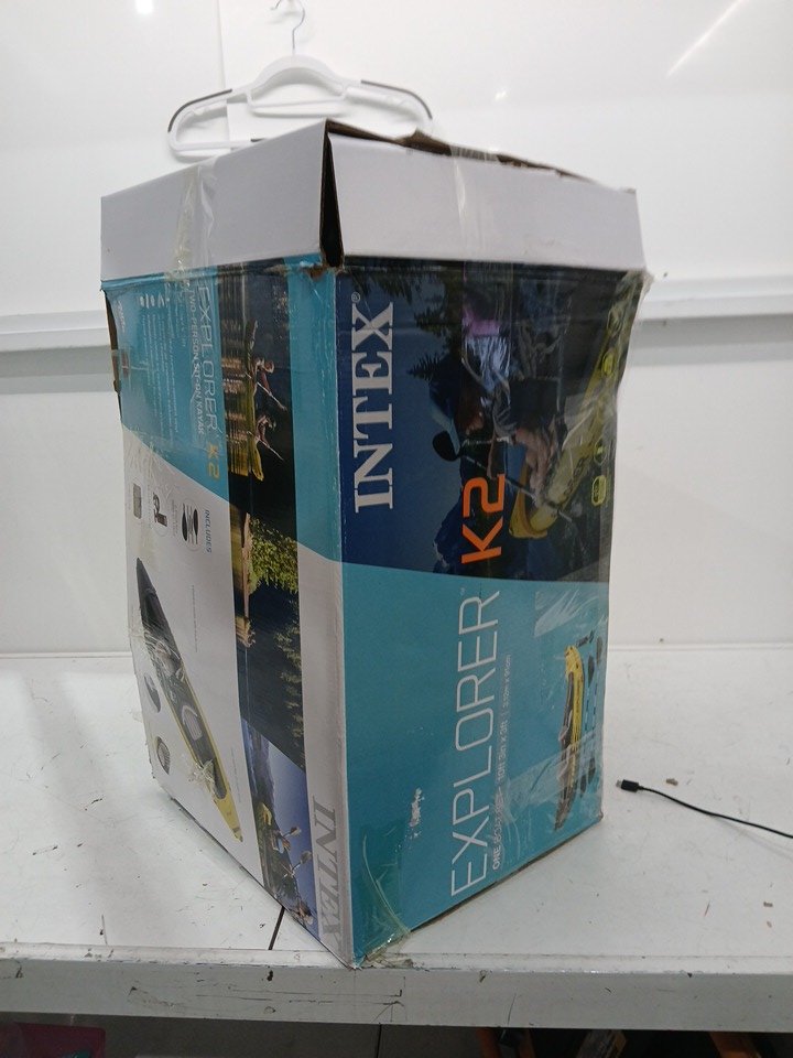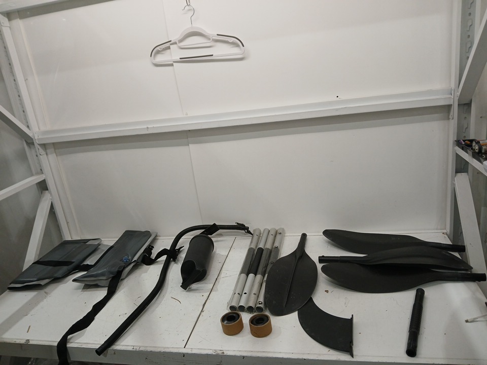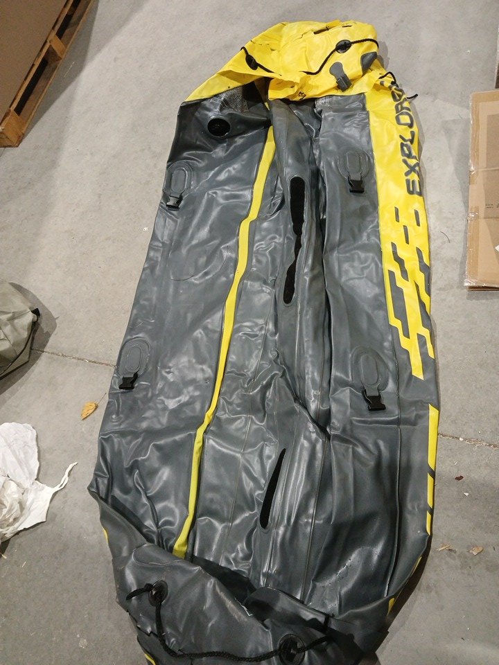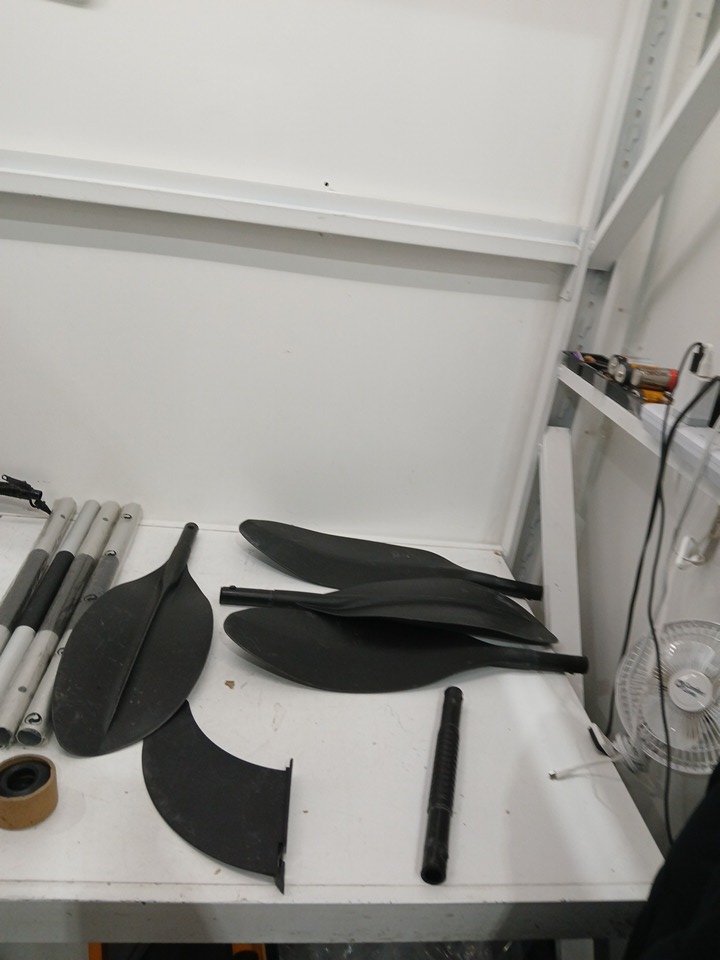 signs of use overall, wet and leave on item, dirt on padddles. small hole located but can be patched