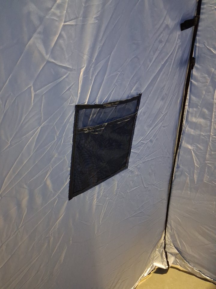 Please note the tent shows signs of previous use with some dirt/dusting on the interior side pocket, see photos.