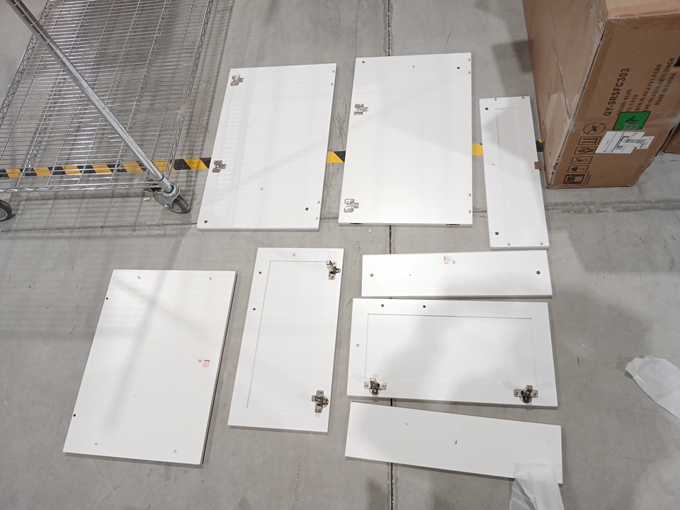 This item does not come with a sink, faucet, nor the leg base. This item has yellow marks on one of its pieces. This item has some pieces already assembled. Additional hardware may be required for assembly