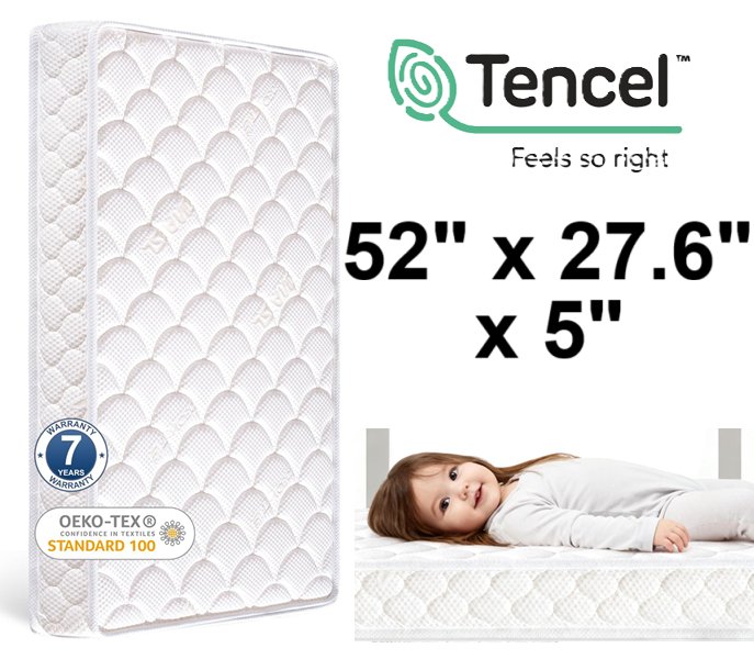 tencel dual-sided crib and toddler mattress - 52" x 27.6" x 5" - scalloped white