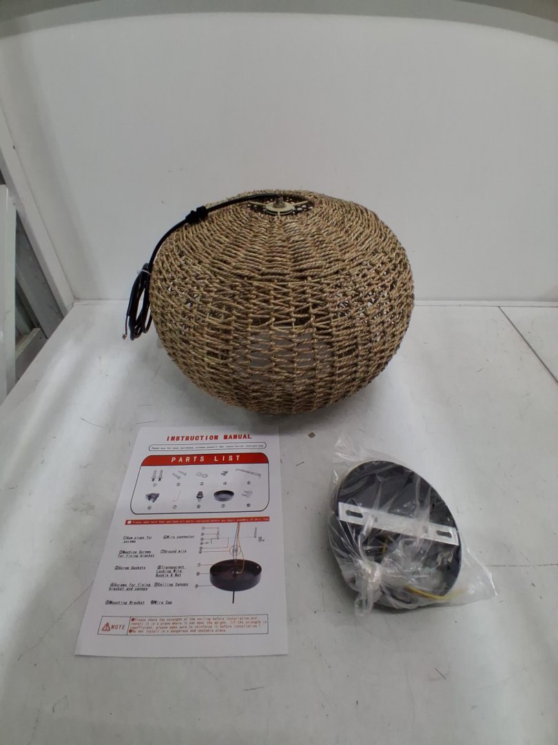 Arturesthome Handwoven Rattan Pendant Light Wicker Lamp Shade - 100W - 120V - 15.74" x 11.02" - LIGHT WOOD (MODEL: ATHDS80090P)