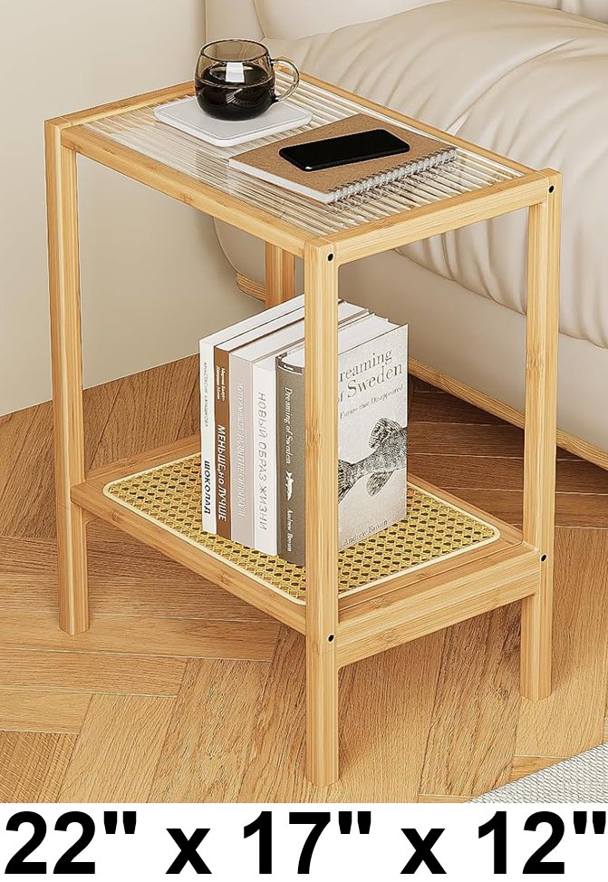 Bamworld Bamboo Rattan Side Table Z Shape - 14.6" x 19.6" x 22.8" - light brown