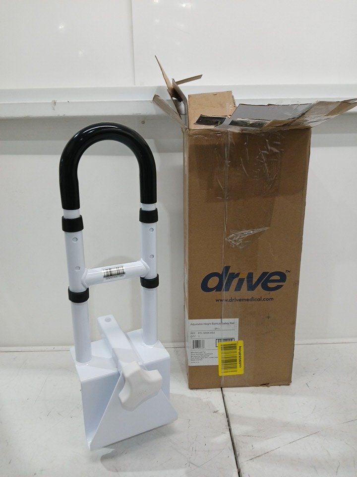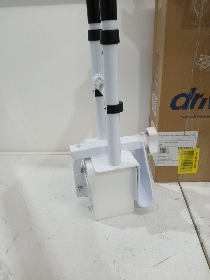 DRIVE Adjustable Height Bathtub Grab Bar Safety Rail Clamp Size: 3"-7"; Handle Height: 14"-17"; Weight Capacity: 300 lbs - WHITE (MODEL:RTL12036-ADJ)