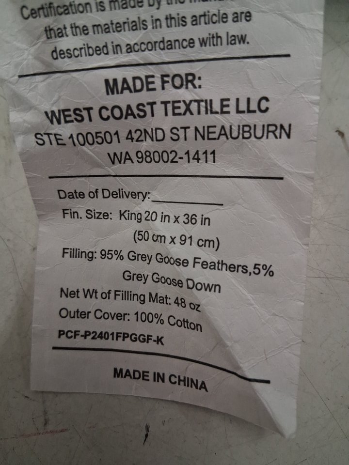 2pk pacific coast Feather and Down Hotel Collection Pillows with 100% cotton shell - KING- white