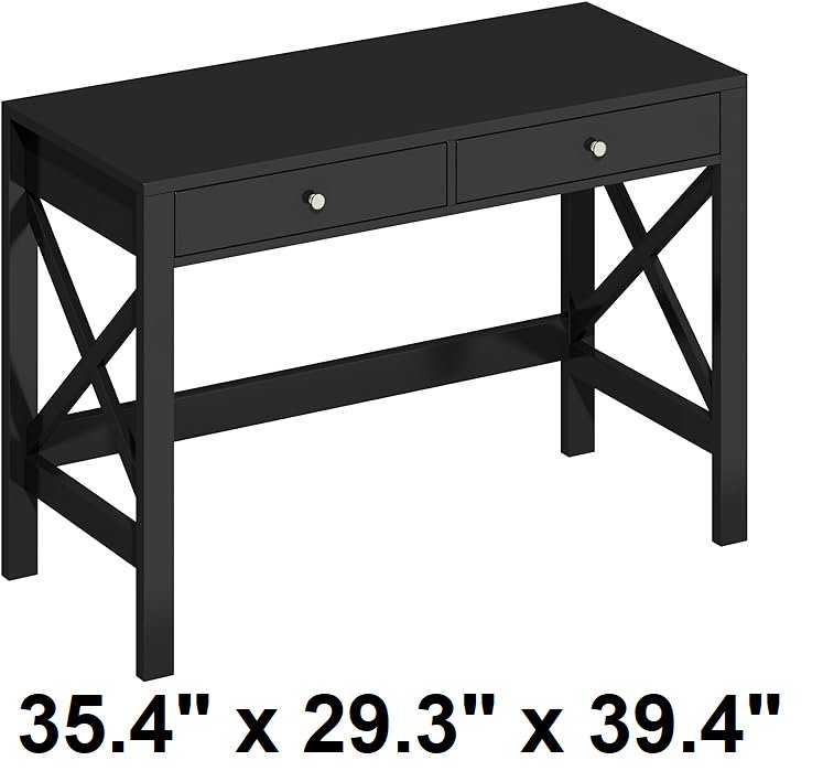 choochoo home office desk with drawers - 35.4" x 29.3" x 39.4" - black (model: eur-od19001-bk)