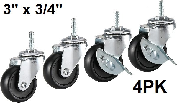 4PK heavy duty Threaded Stem Casters swivel locking castor wheels - 3" x 3/4" - black
