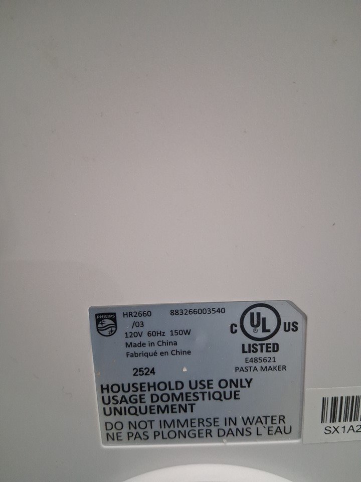 Philips ProExtrude 7000 Series Pasta Maker with NutriU App - 8 Portions - White (model:HR2660/03)