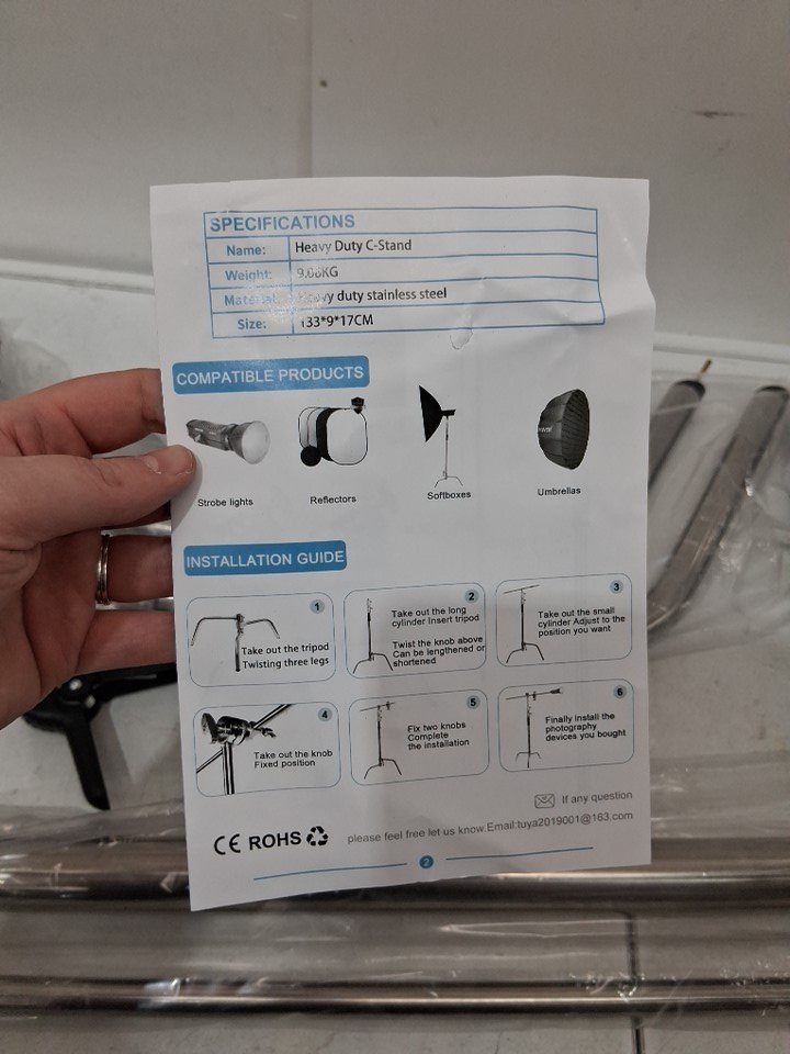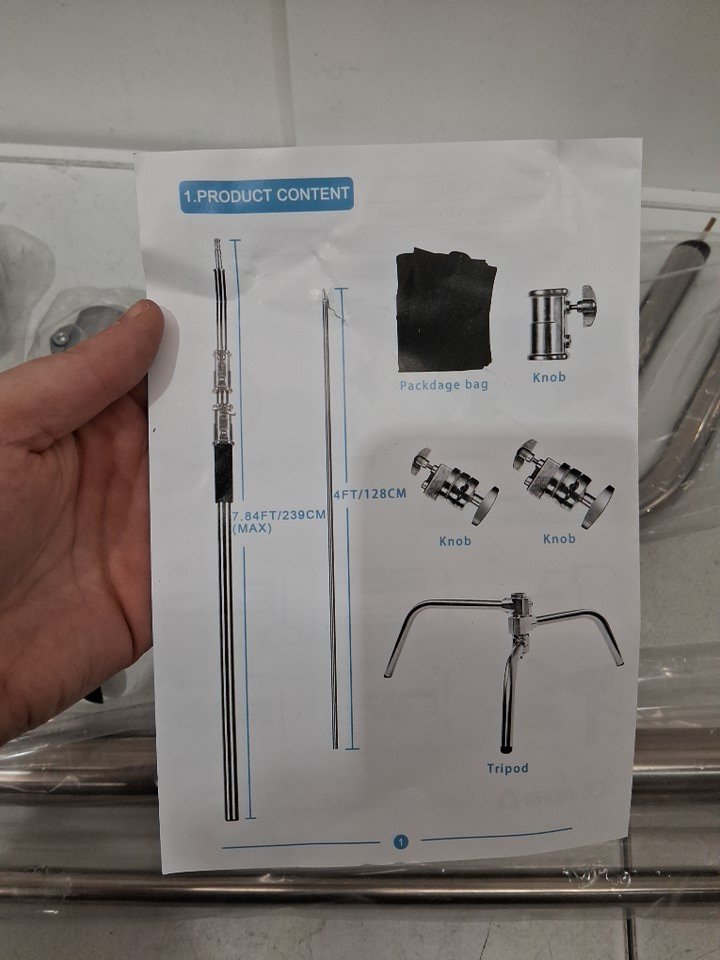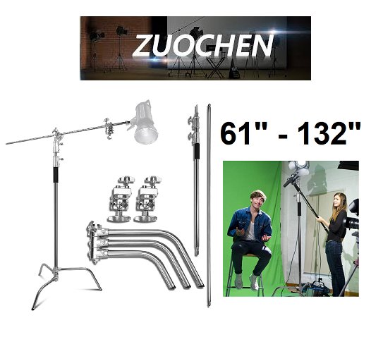 zuochen Upgraded Heavy Duty Stainless Steel C-Stand with Boom Arm 61"-132" Photography Light Stand with 49" Holding Arm - chrome