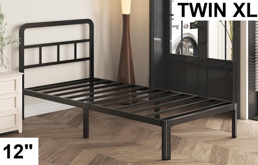 Yicensen metal bed frame with headboard no box spring needed - 12" - TWIN XL - (model lht12-2txl)
