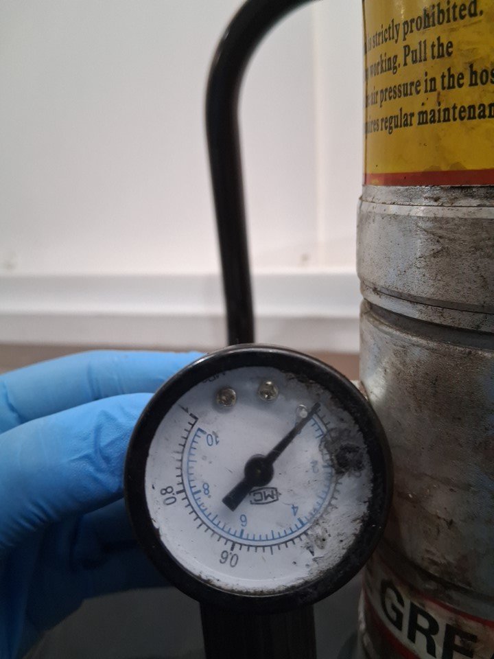 please note there is grease present of on the item however the inside of the pump doesn't appear to be covered with grease. The wheels appear to be new