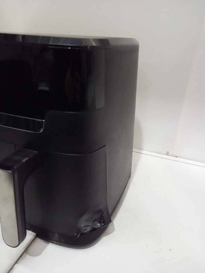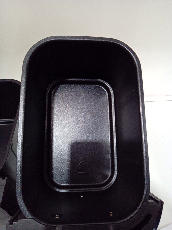 - the small basket has a cosmetic issue - it seems something hot was out to close to the basket and it has a melt spot. this spot is cosmetic, the basket is not damaged inside and that basket functions normally. - Item has dirt residue from demo/previous use - Item has been tested for power. Please see photos.