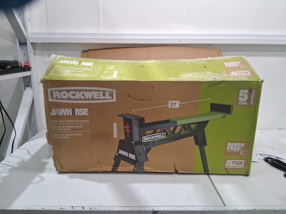 ROCKWELL JAWHORSE MATERIAL and SAW SUPPORT TABLE - JAW EXTENDS TO 37" - GREY/GREEN (Model: RK9003)