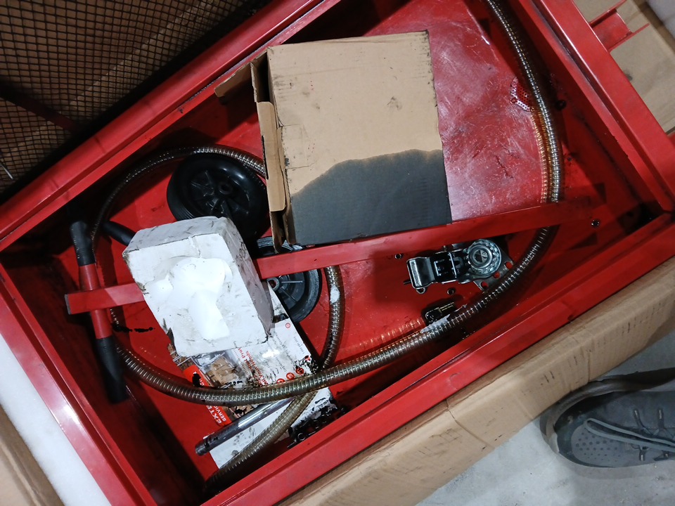 Please note this is supposed to come with a pump, that is not included. However this can still be used as an oil drain pan. There is a heavy presence of oil residue inside the pan, see photos attached.