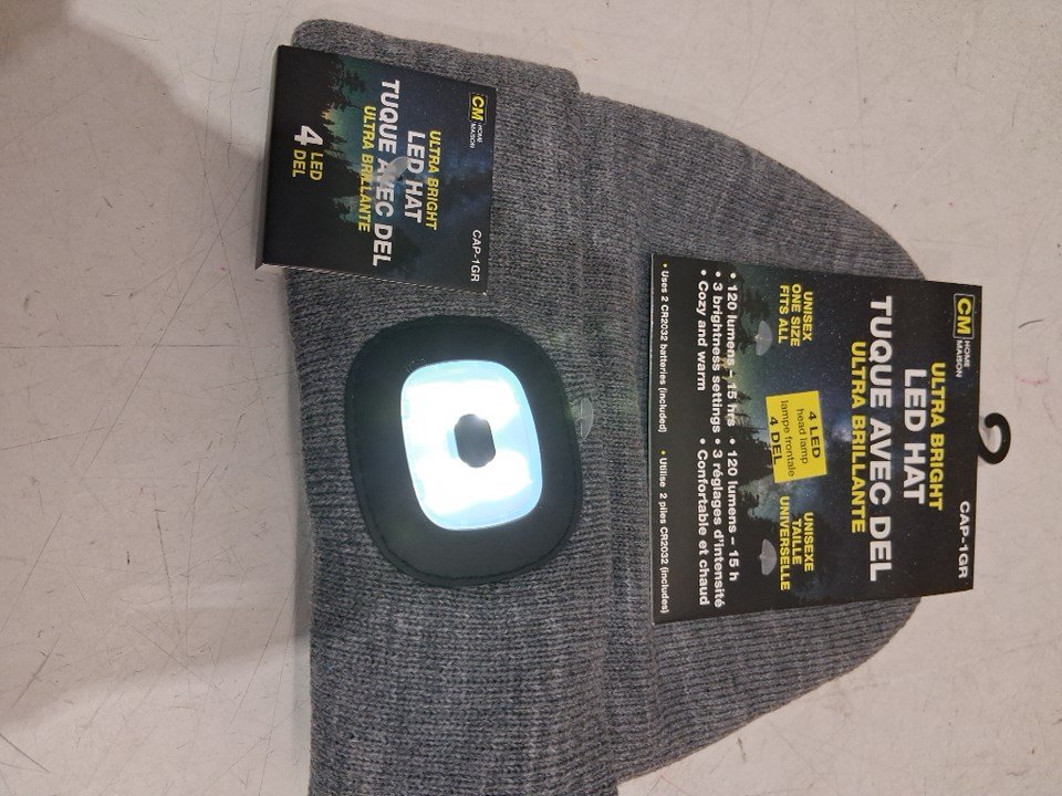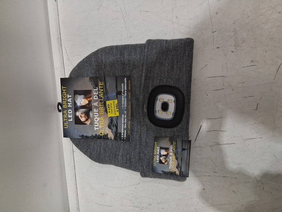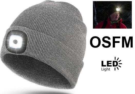 unisex beanie hat with led head lamp 3 functions - osfm - grey