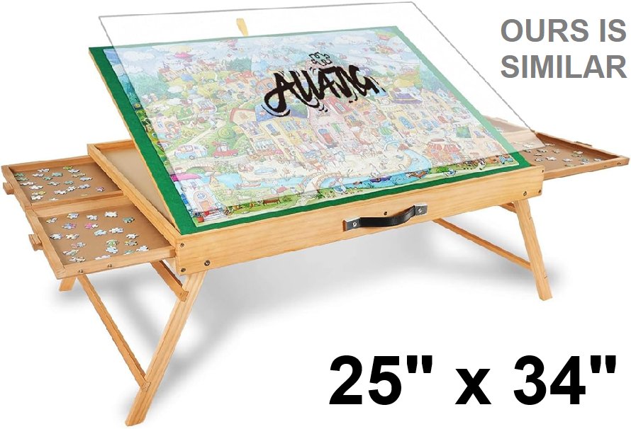 Adjustable Jigsaw Puzzle Board with 4 Drawers, legs, adjustable angle, and Cover - 25" x 24" - brown green