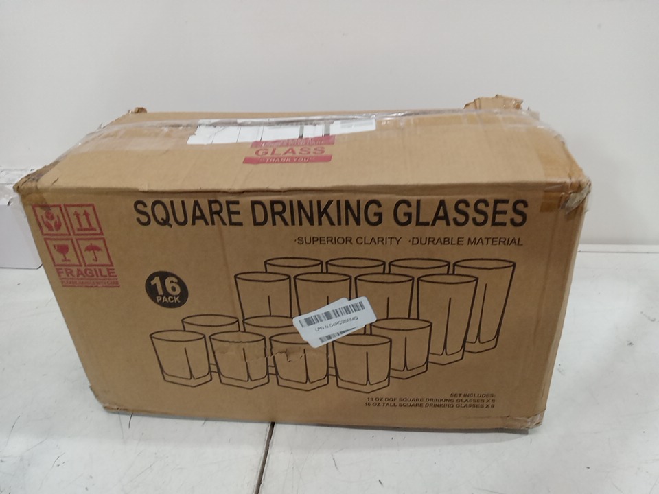 16PC LE RAZE Everyday Drinking Glasses SQUARED BASE 13OZ-16OZ- CLEAR (MODEL:GL-939)