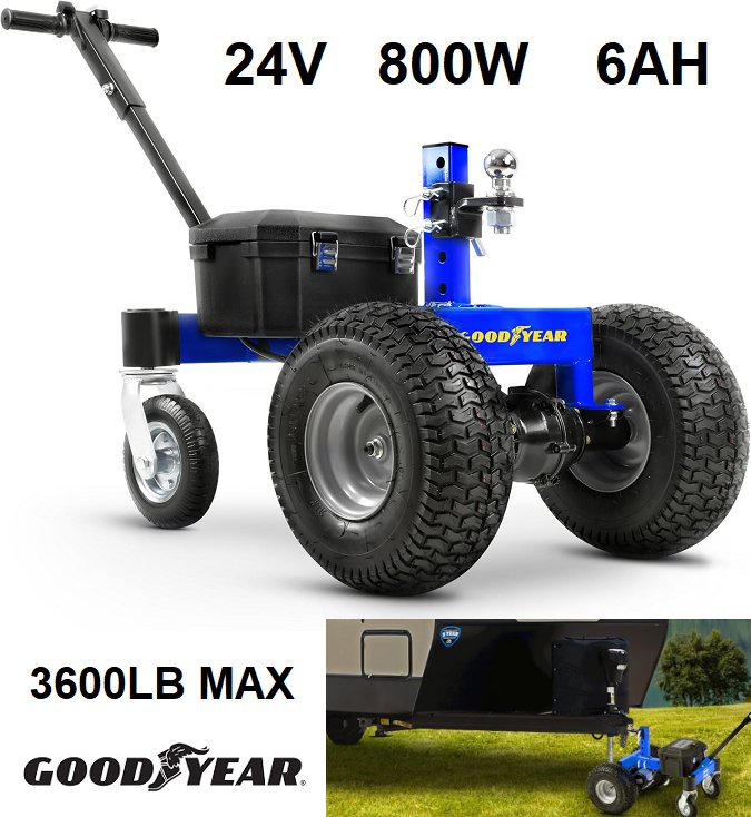 Goodyear Electric Trailer Dolly - 3600LBS Max Trailer Weight, 600LB Max Tongue Weight - DC 24V 800W 7Ah w/Heavy Duty Commercial 2" Ball Hitch Mount - Blue