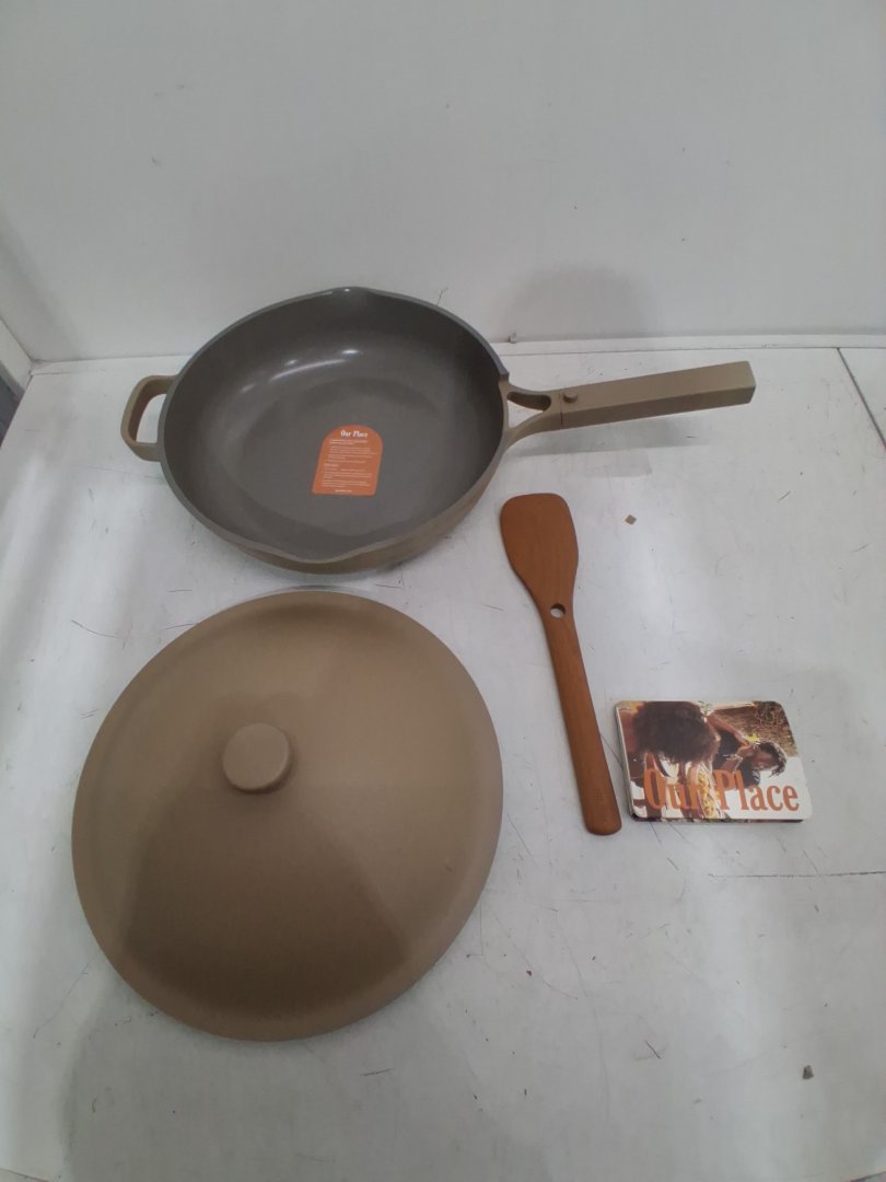 3pc our place Always Pan Nonstick, Toxin-Free Ceramic Cookware with wooden spatula - 2.5l - beige