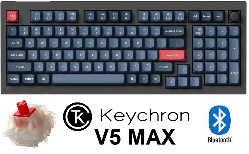 keychron v5 max 96% wireless mechanical keyboard WITH RED SWITCHES HOT SWAP 100 keys - black