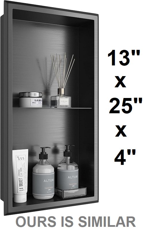 Arausk Stainless Steel Shower Niche - 13" x 25" x 4" - black stainless steel (model: bn2412-gm)