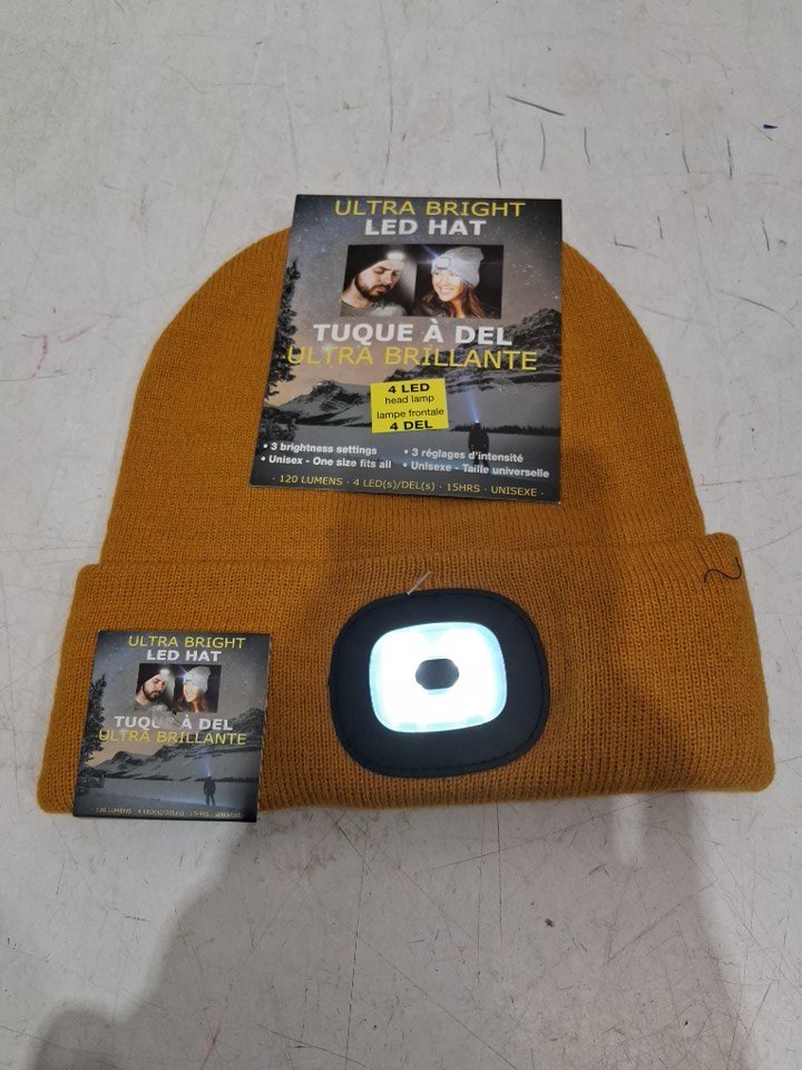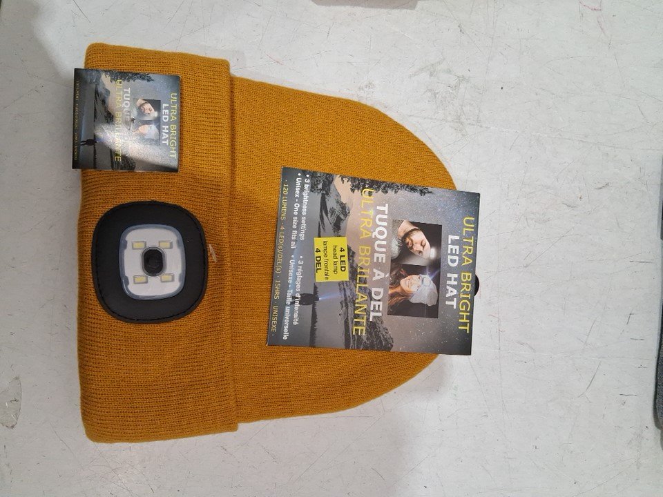 unisex beanie hat with led head lamp 3 functions - osfm - mustard