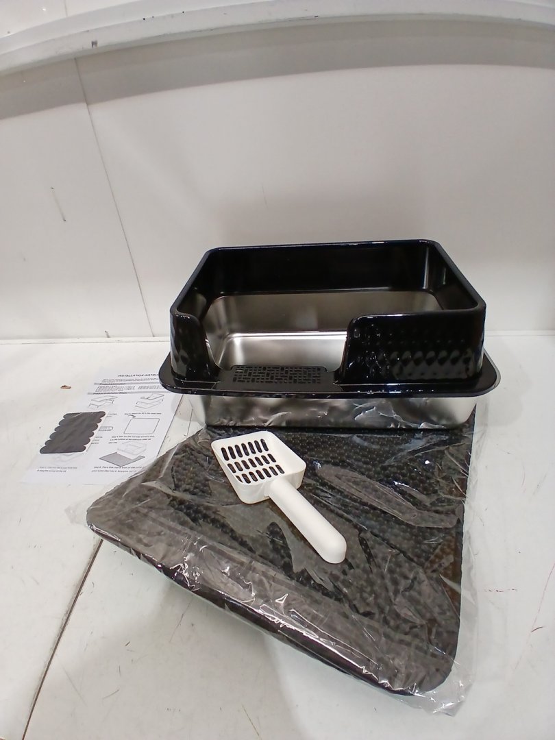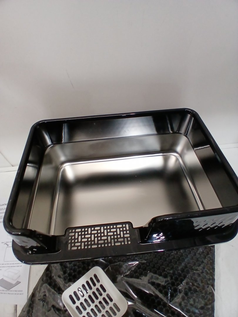 Enclosed Stainless Steel Cat Litter Box with Lid - 19" x 13" x 9" - silver/black (model: psk201)