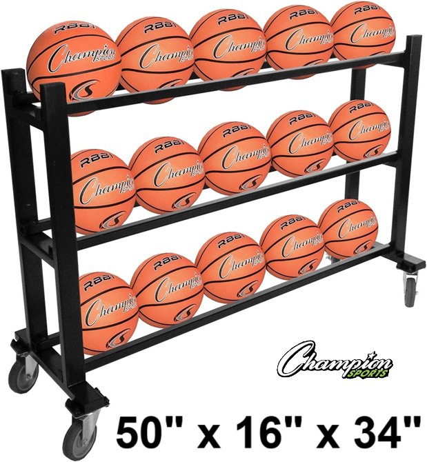 Champion Sports Deluxe Heavy Duty Basketball Cart - 50" x 16" x 34" - black (model:BKCART)