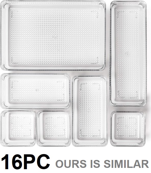 16pc Hard plastic multi-use organizing containers - multiple sizes - clear