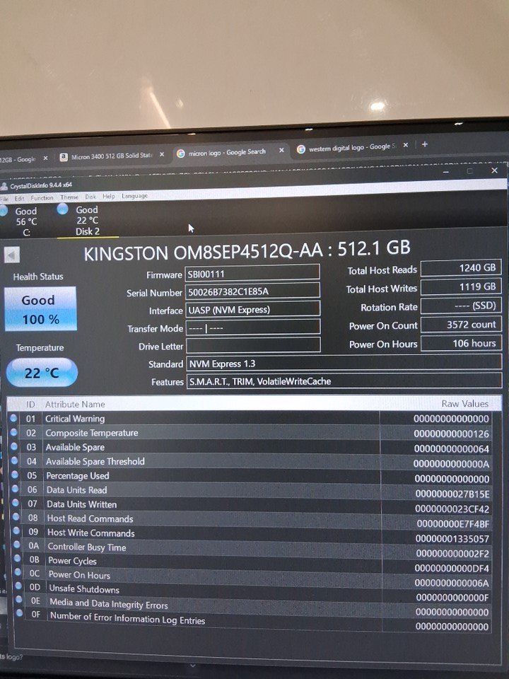 + We were unable to view the NVME specs in CrystalDisk but we are able to read and write to it +
