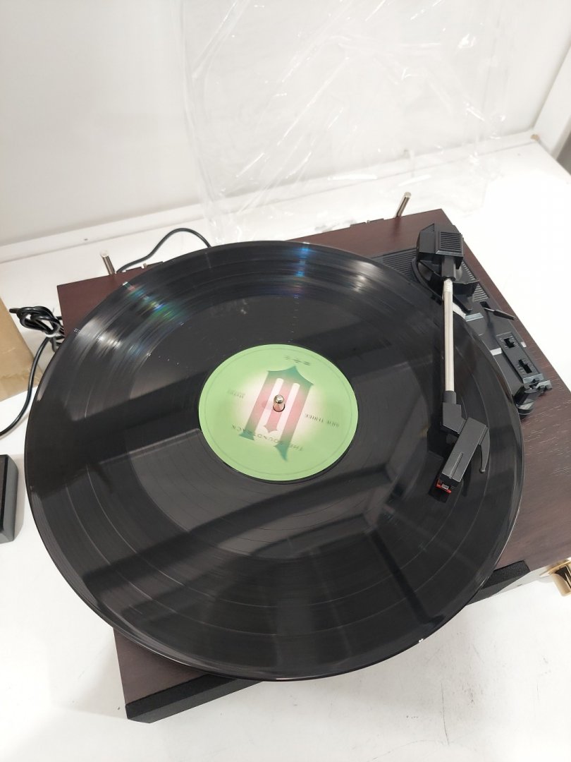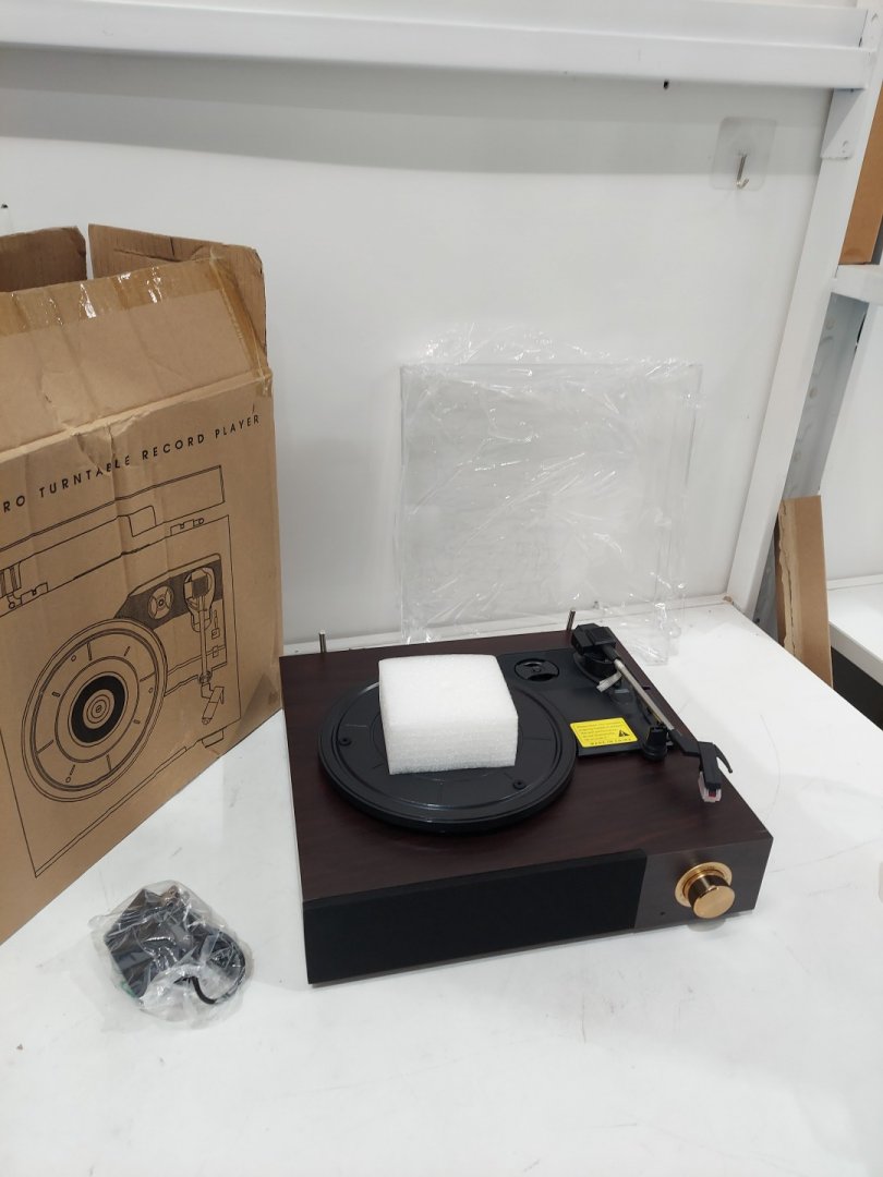 fydee vinyl record player with built-in speakers and bluetooth - 3 speeds (33/45/78 rpm), rca output for external devices, auto stop & dust cover - dark brown (model: a8)