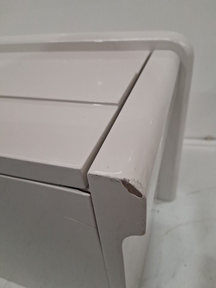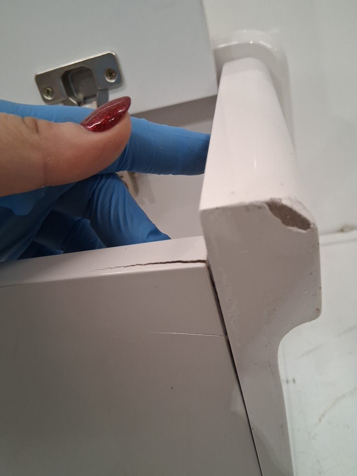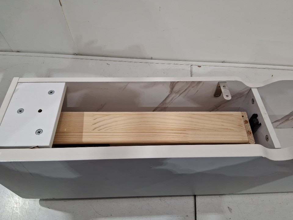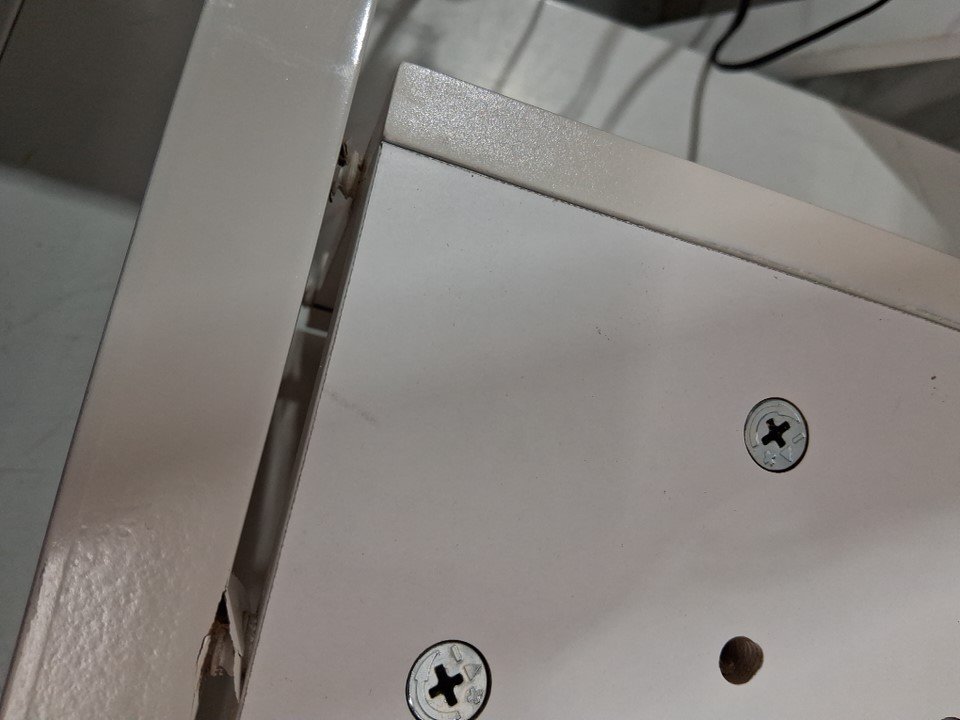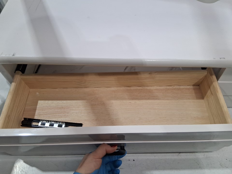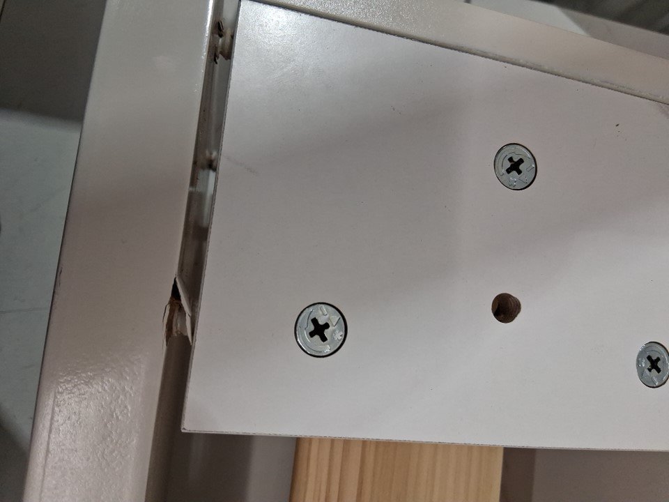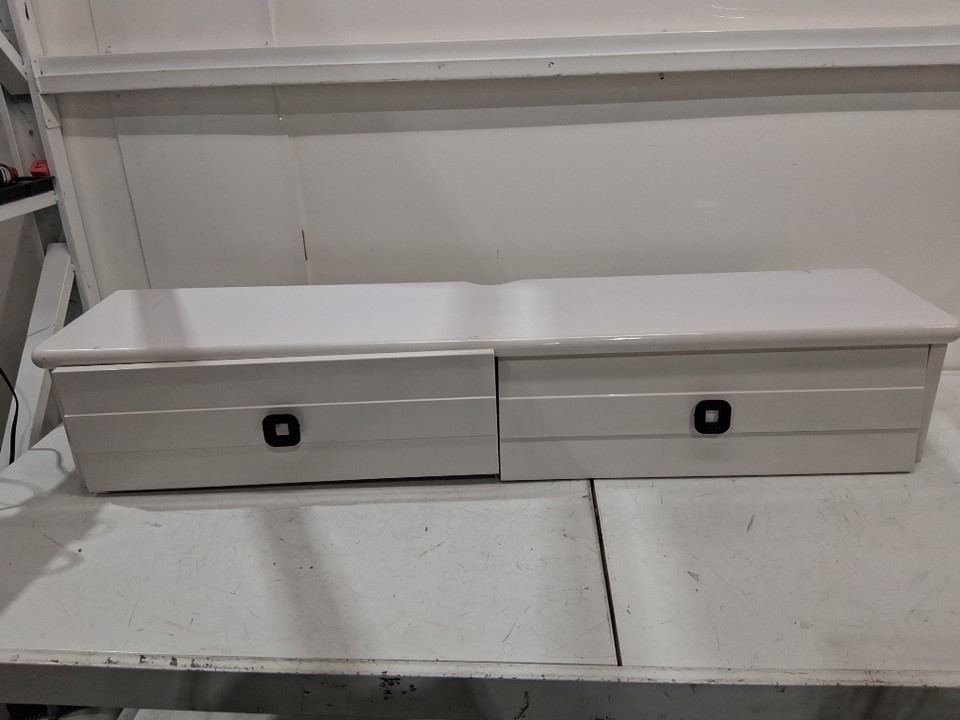 please note this item has some broken and chipped areas, as well as some dirt/dust residue and the drawer slides will definitely need to be replaced. Additional generic hardware may be required for assembly