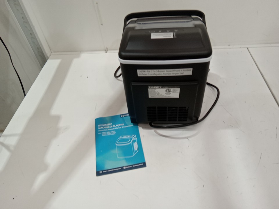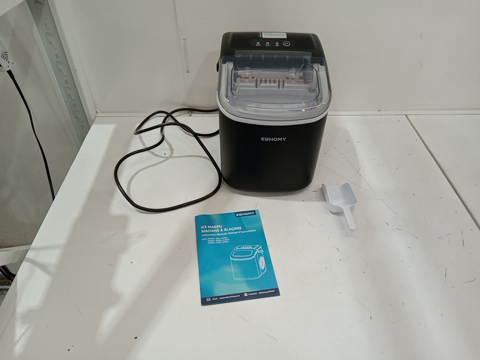 EUHOMY Countertop Ice Maker Machine with Handle, Basket and Scoop - MAKES 26LBS Per Day - BLACK - (MODEL:IM001-Bbl-CAEH)
