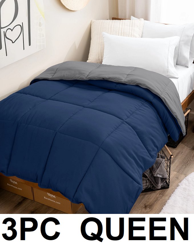 3PC HOMECHOICE REVERSIBLE all season comforter bet set - queen - grey/blue
