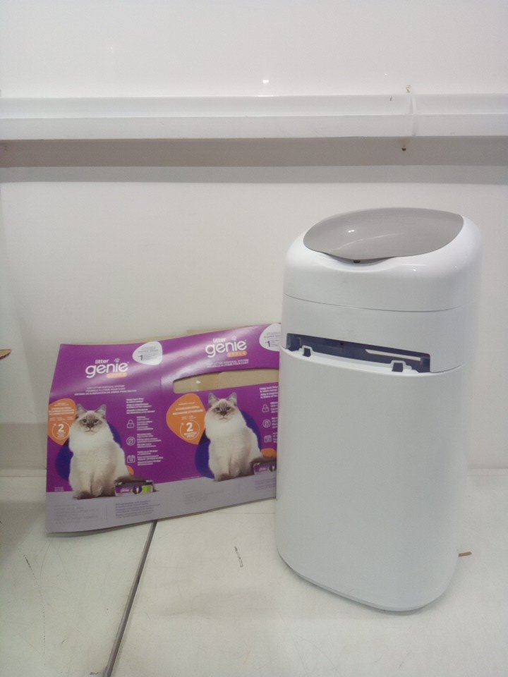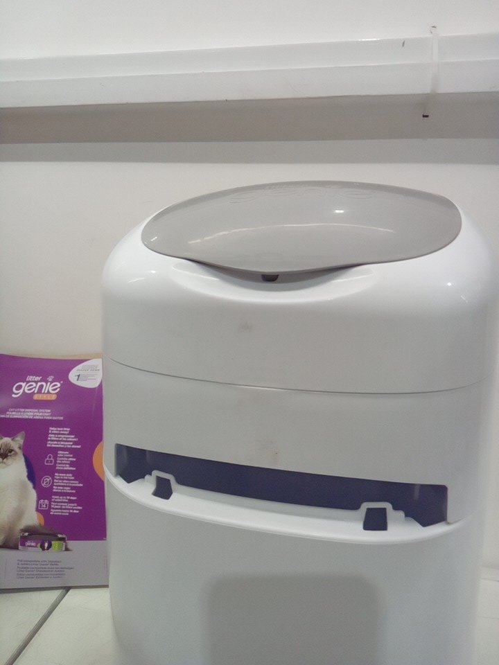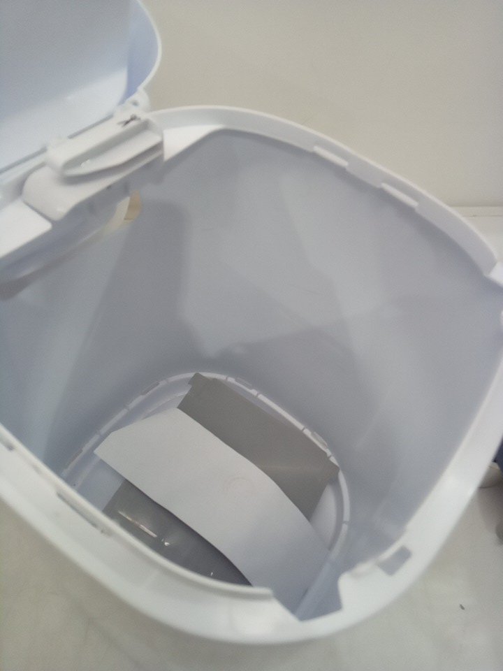 please note that there is slight pet hair and staining on the pail. see photos. there is also missing the scooper.