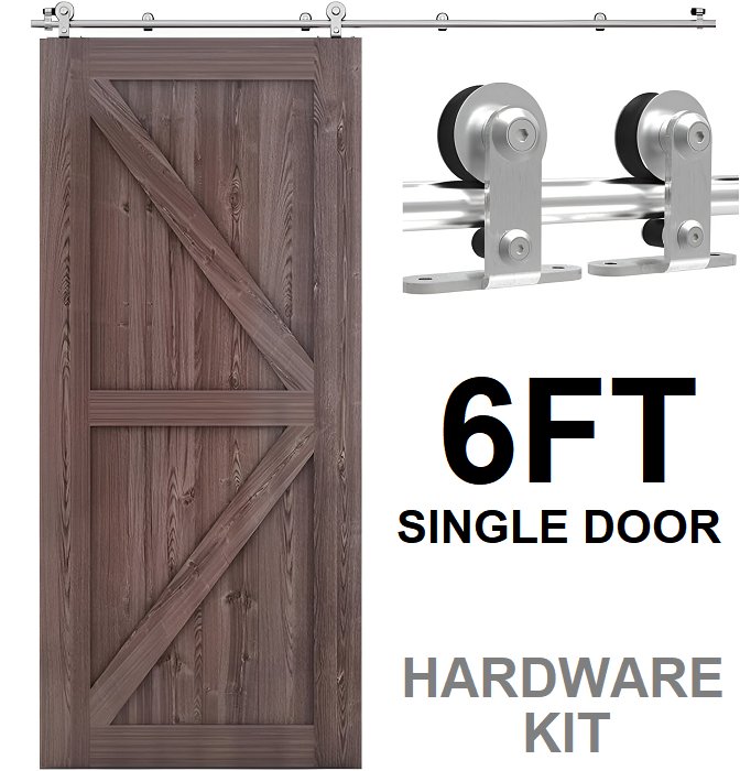 ccjh t-shape single sliding barn door hardware kit - 6ft - stainless steel