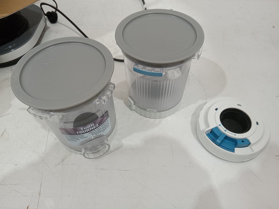 The manual are missing from the original packaging. Please note that there are food stains on the pints, there are scratch marks on the outer bowl lid and pint lids. There are scratch marks on the top/sides and handles due to previous use. Tested for power and motor function only. (Please see photos)