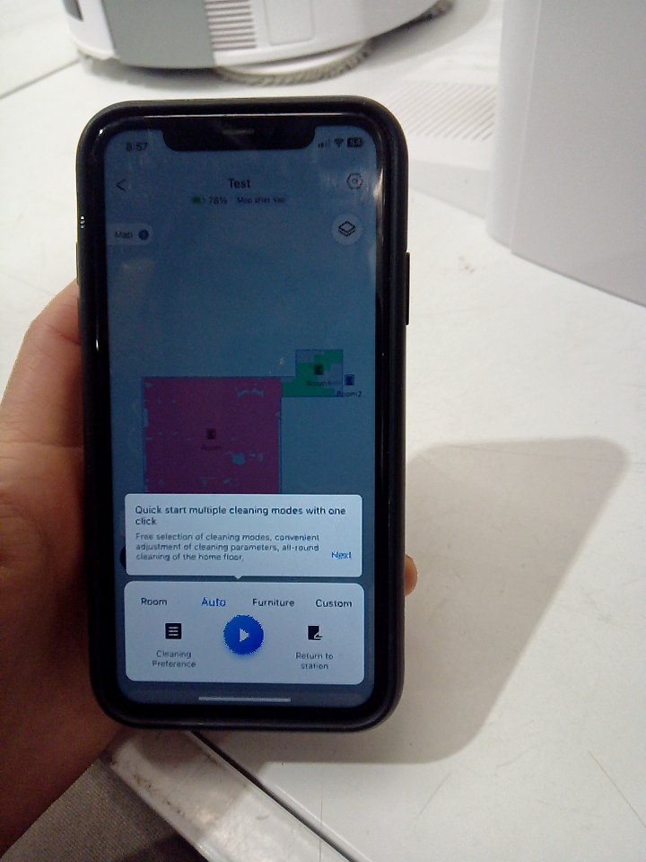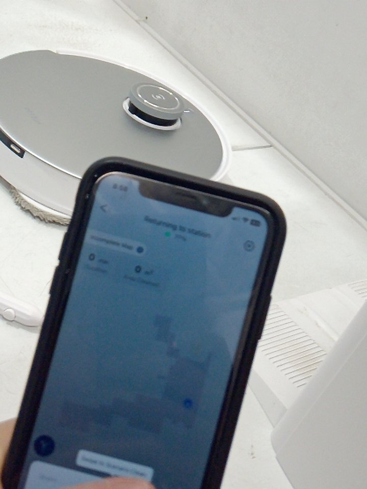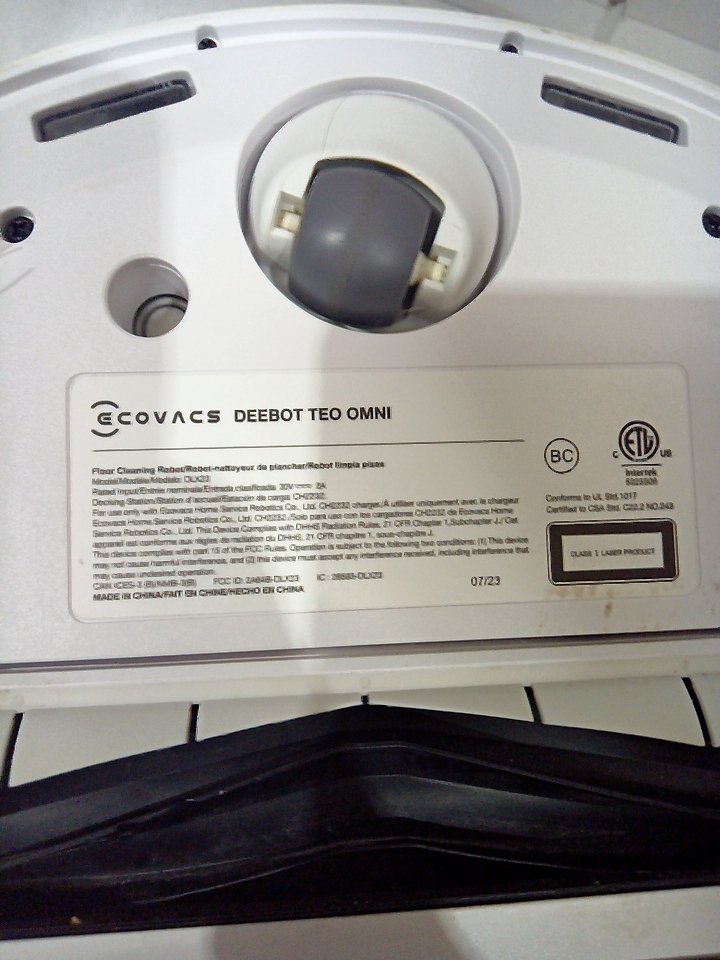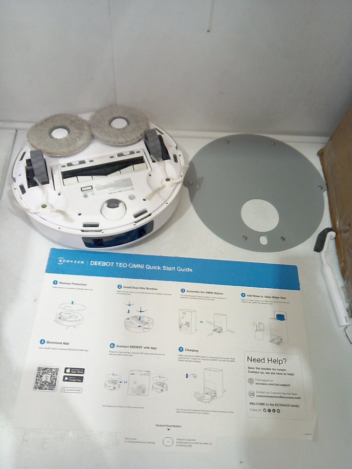 There are dust markings on the bottom of the vacuum and mop pads. Tested for power, movement and returning to base with the Ecovacs mobile app. (SEE PHOTOS)